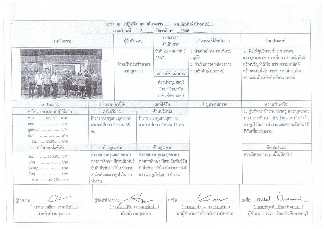 3. | สรุปรายงาน โครงการสานสัมพันธ์ CHONVC | คลิกที่นี่ |