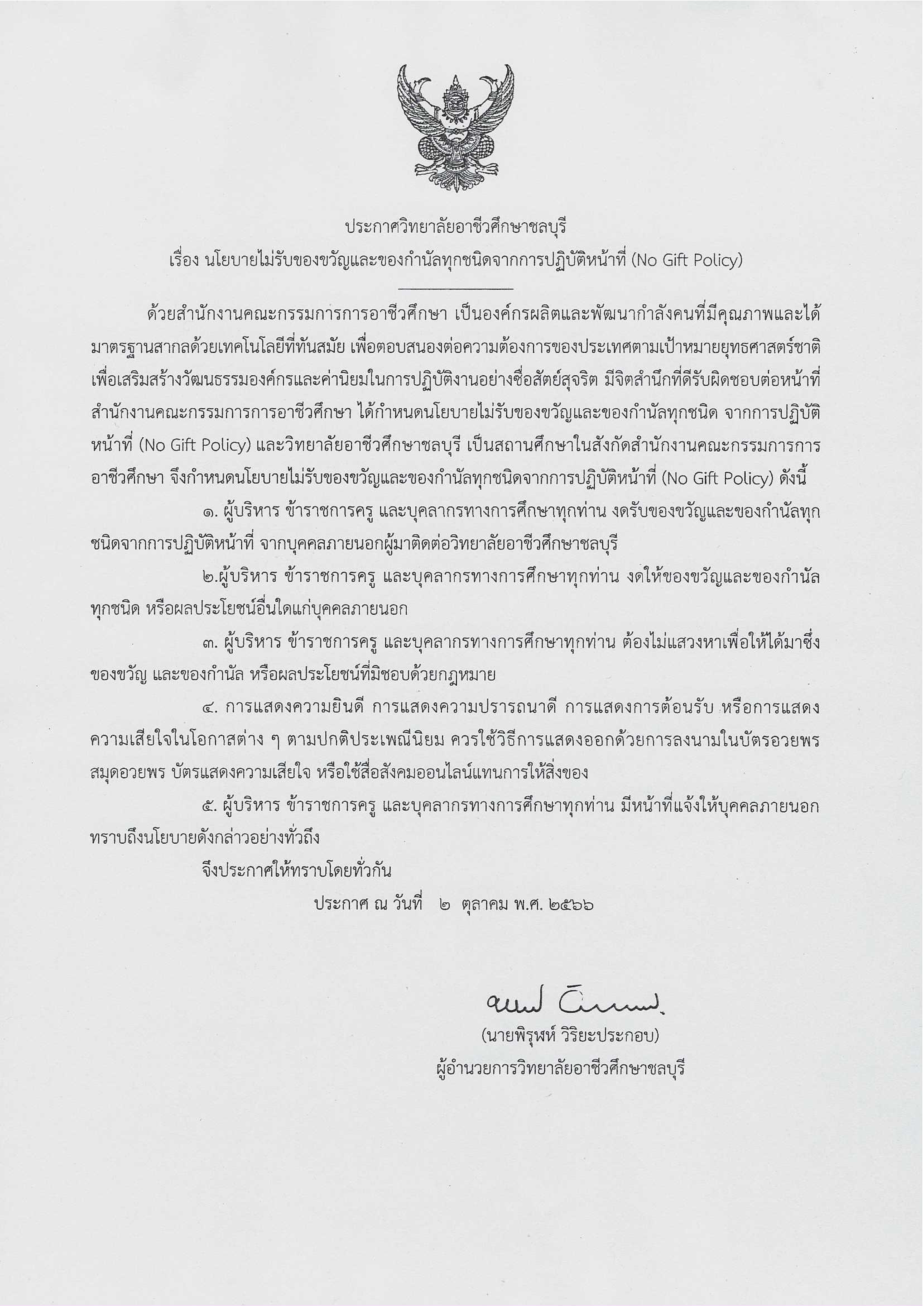 นโยบายไม่รับของขวัญ (No Gift Policy)